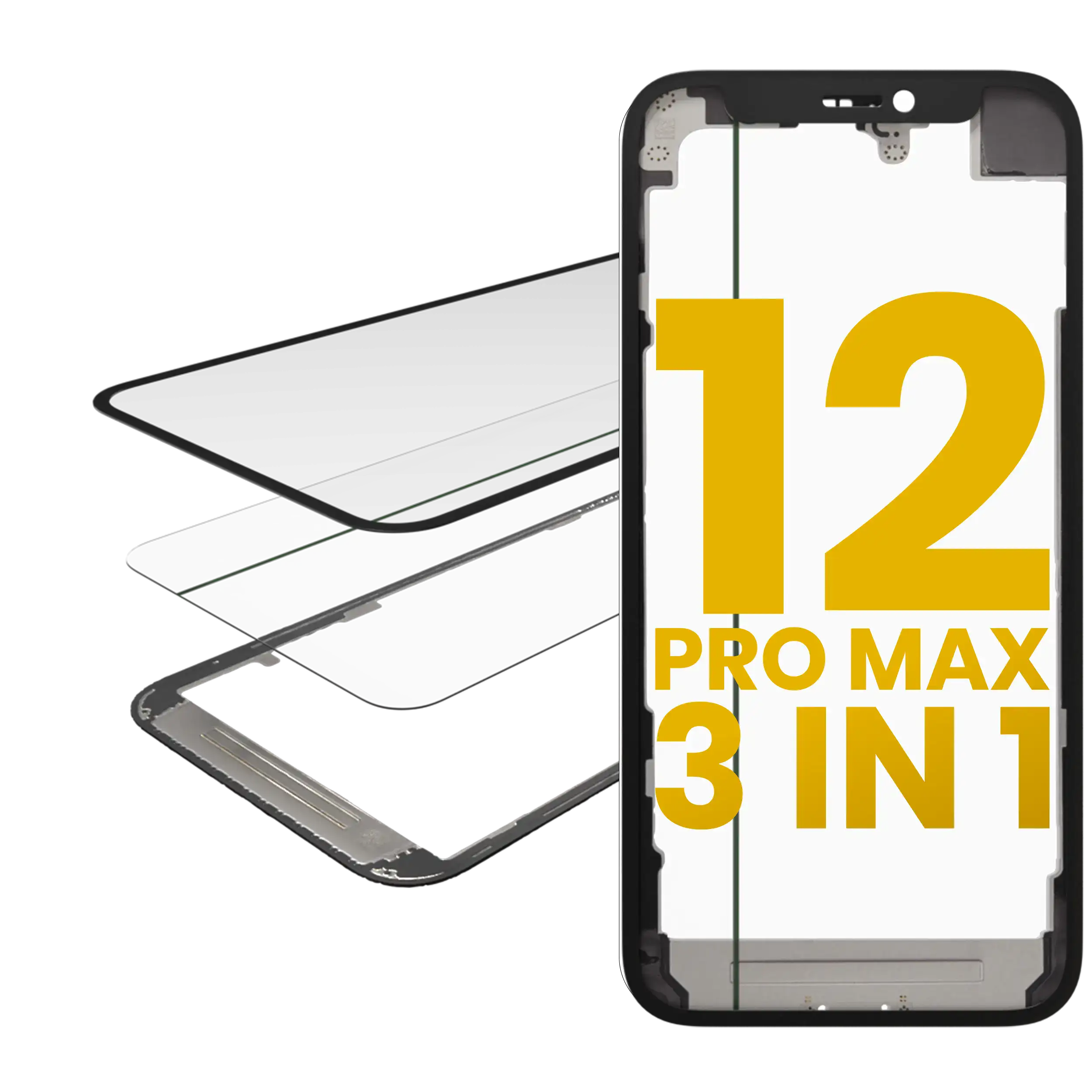 3 In 1 (Glass With OCA Pre-Installed + Frame) For IPhone 12 Pro Max (OCA Master)
