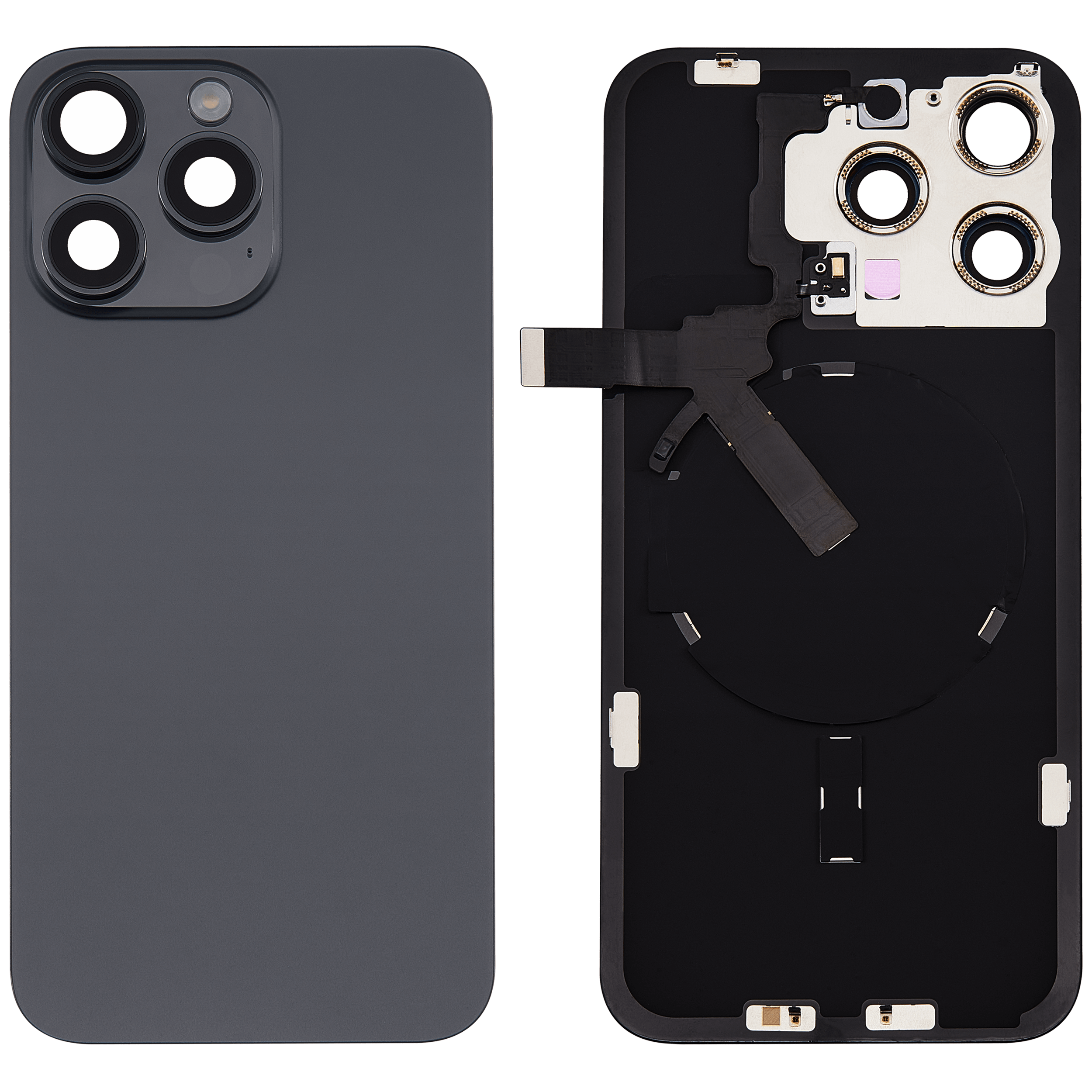 (AM+) Back Glass w/ MagSafe Magnet & NFC & Flashlight Flex For iPhone 15 Pro Max(Black Titanium) (No Logo)