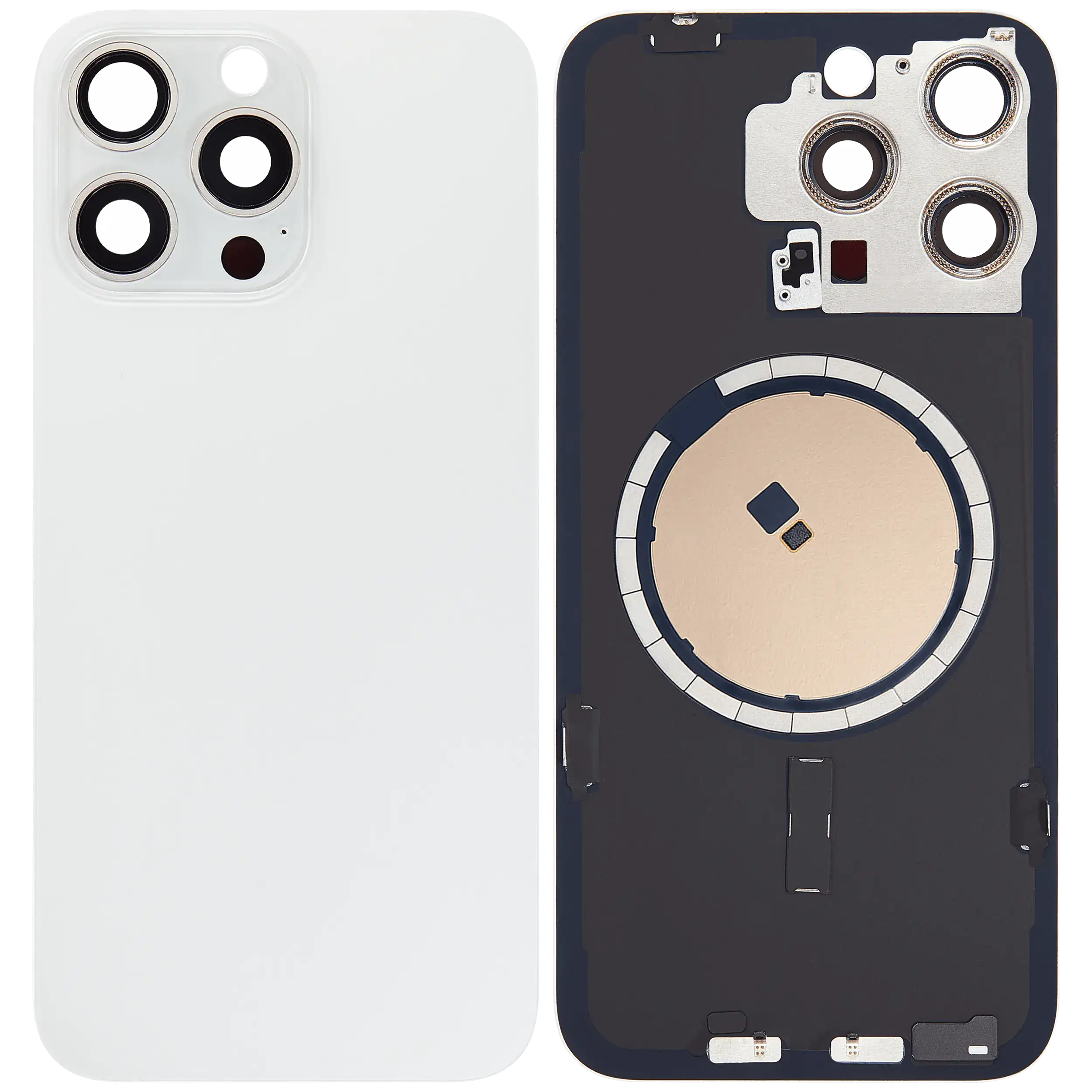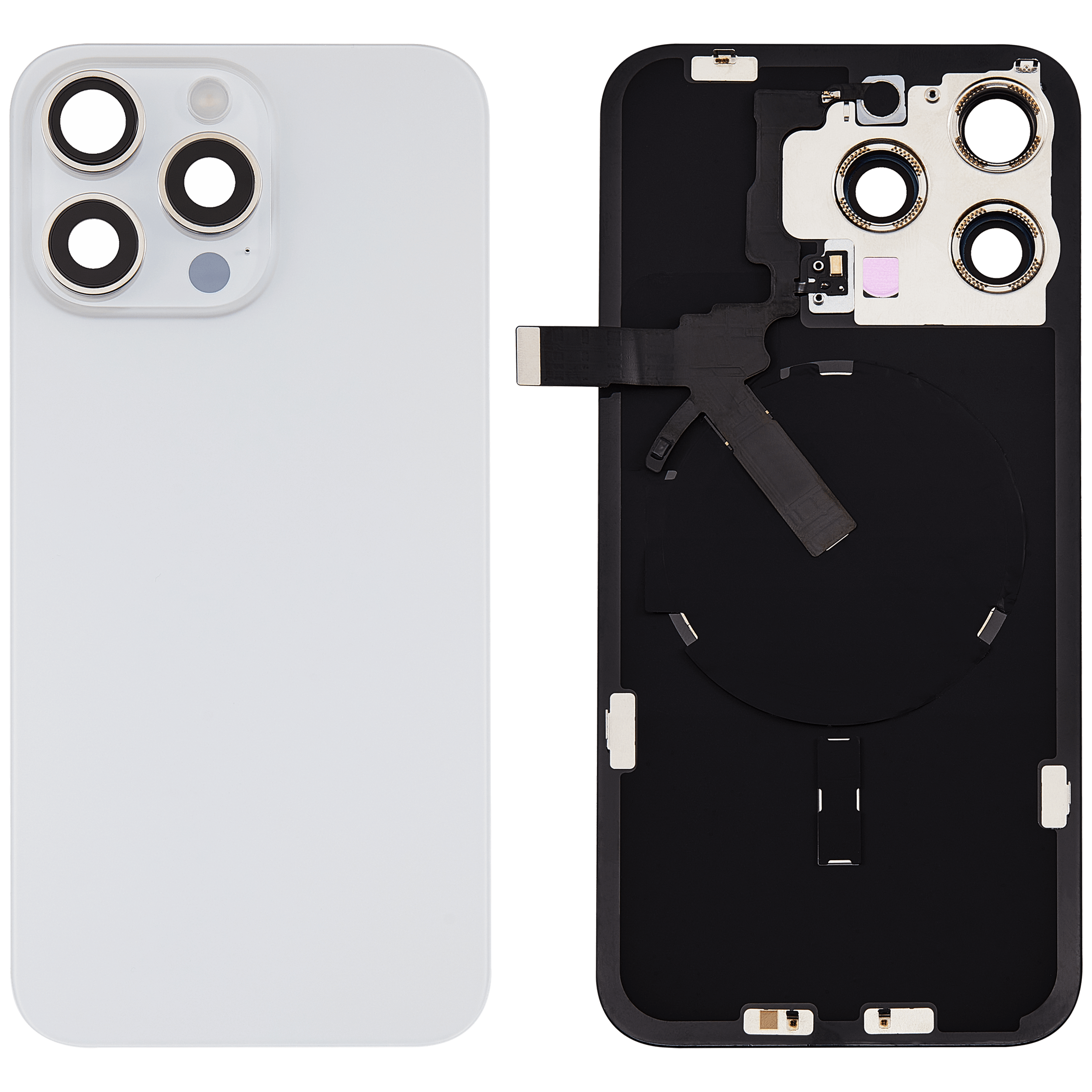 (AM+) Back Glass w/ MagSafe Magnet & NFC & Flashlight Flex For iPhone 15 Pro Max(White Titanium) (No Logo)
