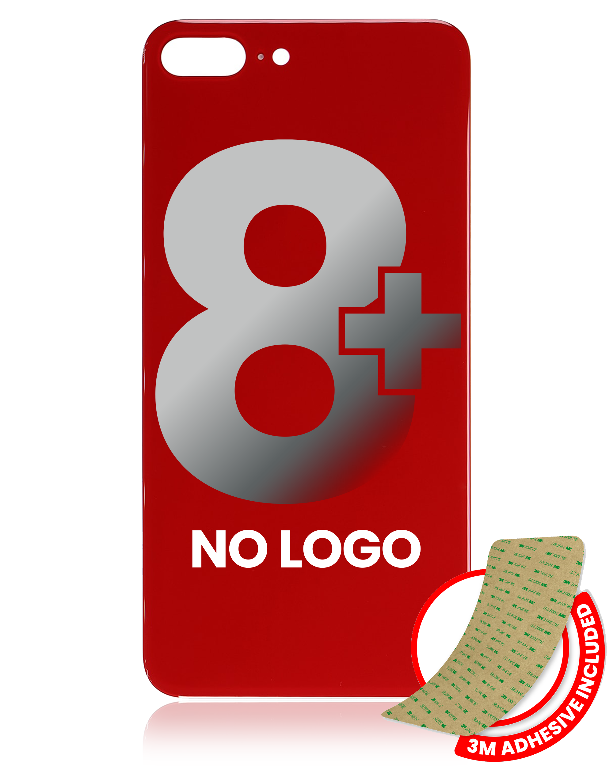 (AM+) Back Cover Glass with Adhesive for iPhone 8 Plus (No Logo & Big Camera Hole) - Red