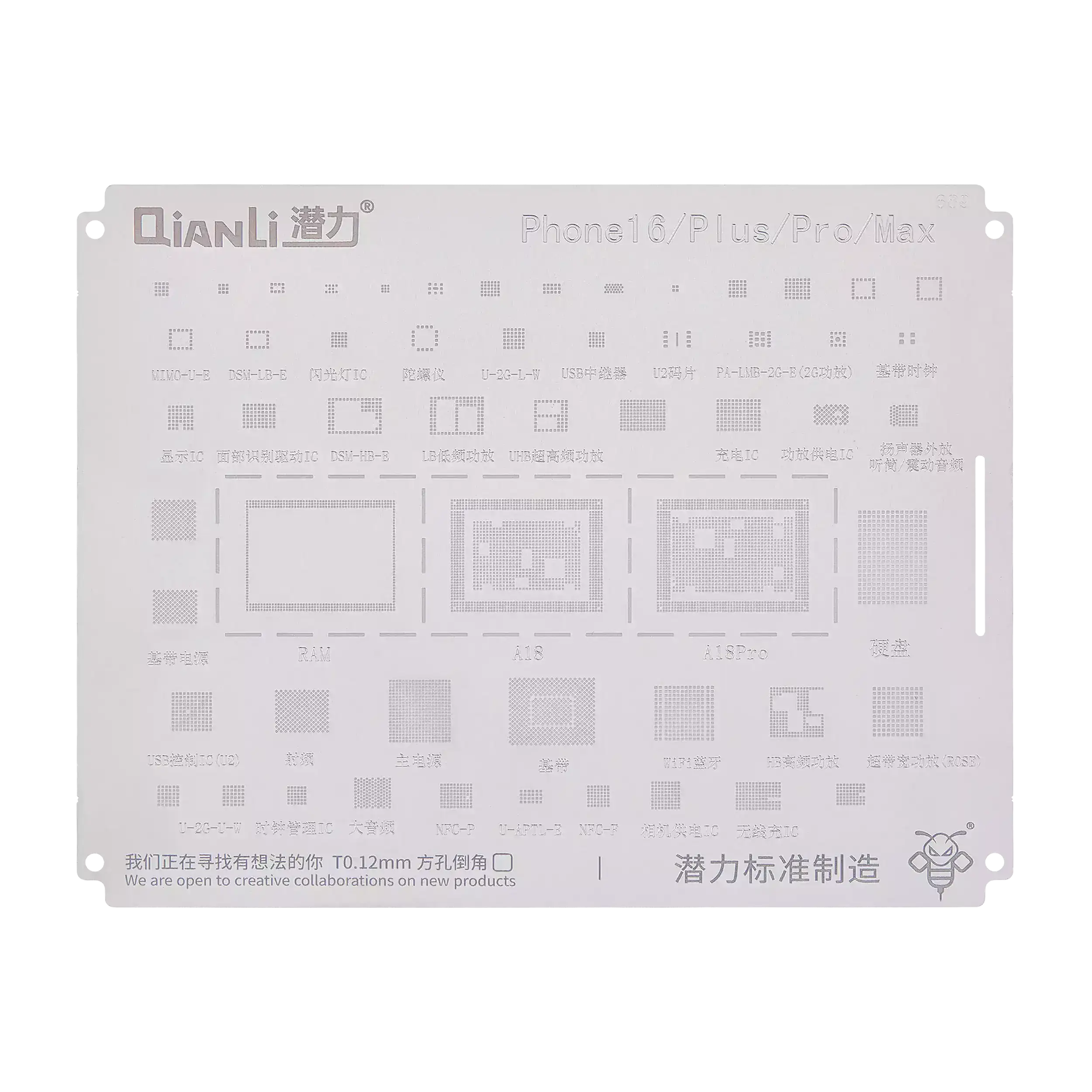 Bumblebee Stencil (QS689) For iPhone 16 / 16 Plus / 16 Pro / 16 Pro Max (Qianli)