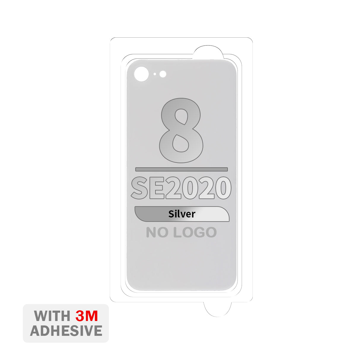 Aftermarket Plus Back Cover Glass with Adhesive for iPhone 8 / SE (2020) (No Logo & Big Camera Hole) - Silver