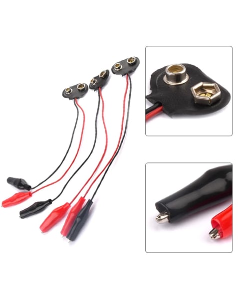 - 9V Battery Snap to Alligator Clips Connection Wire (Pack of 3)